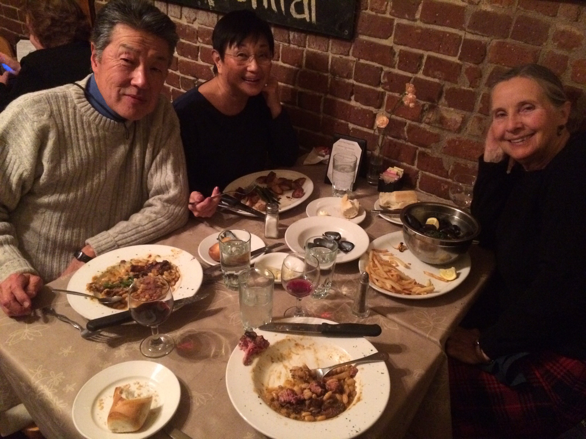 The four of us had pork belly, mussels, escargot, onion soup, Cesar salad and cassoulet with lamb and duck. Over-ate again!