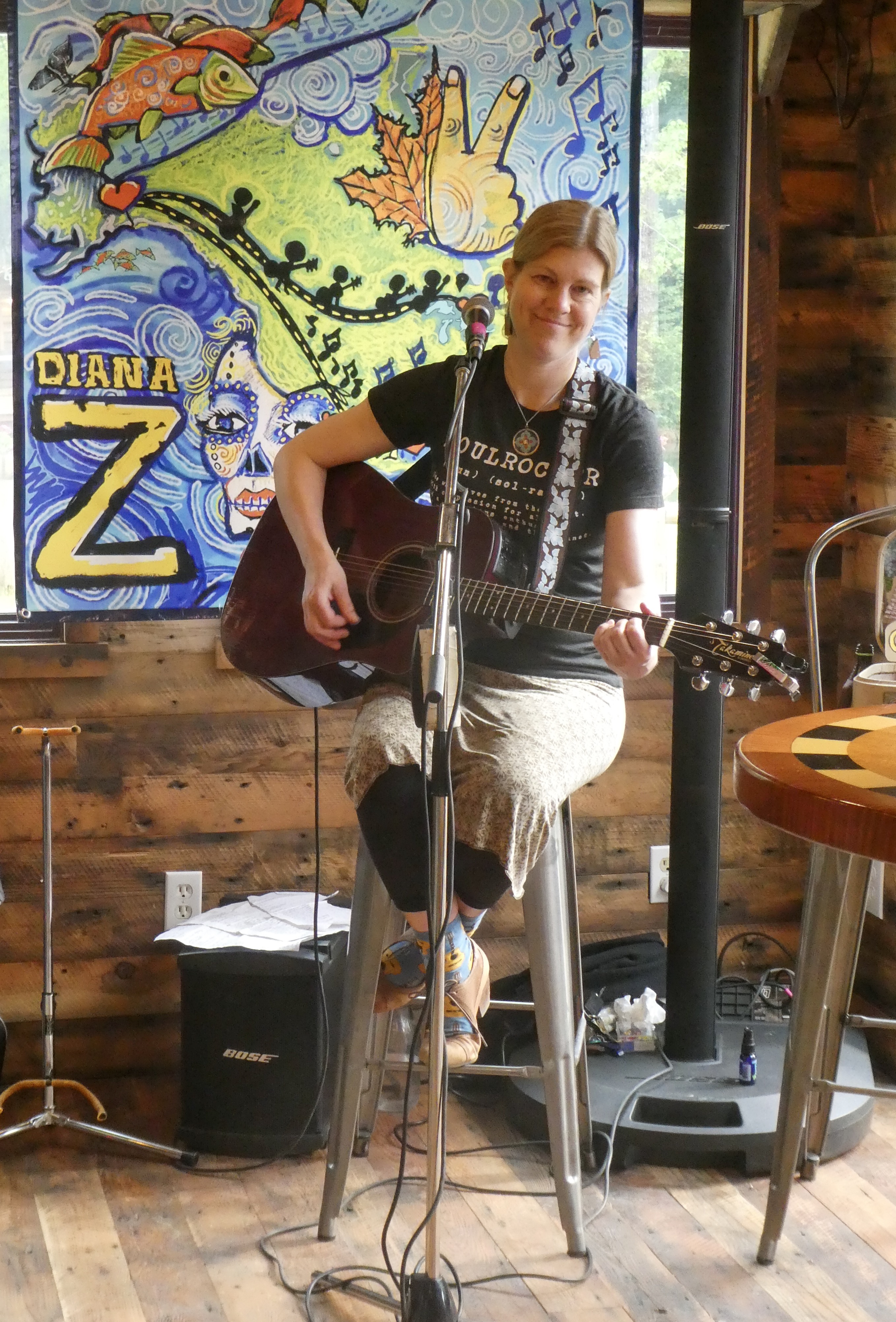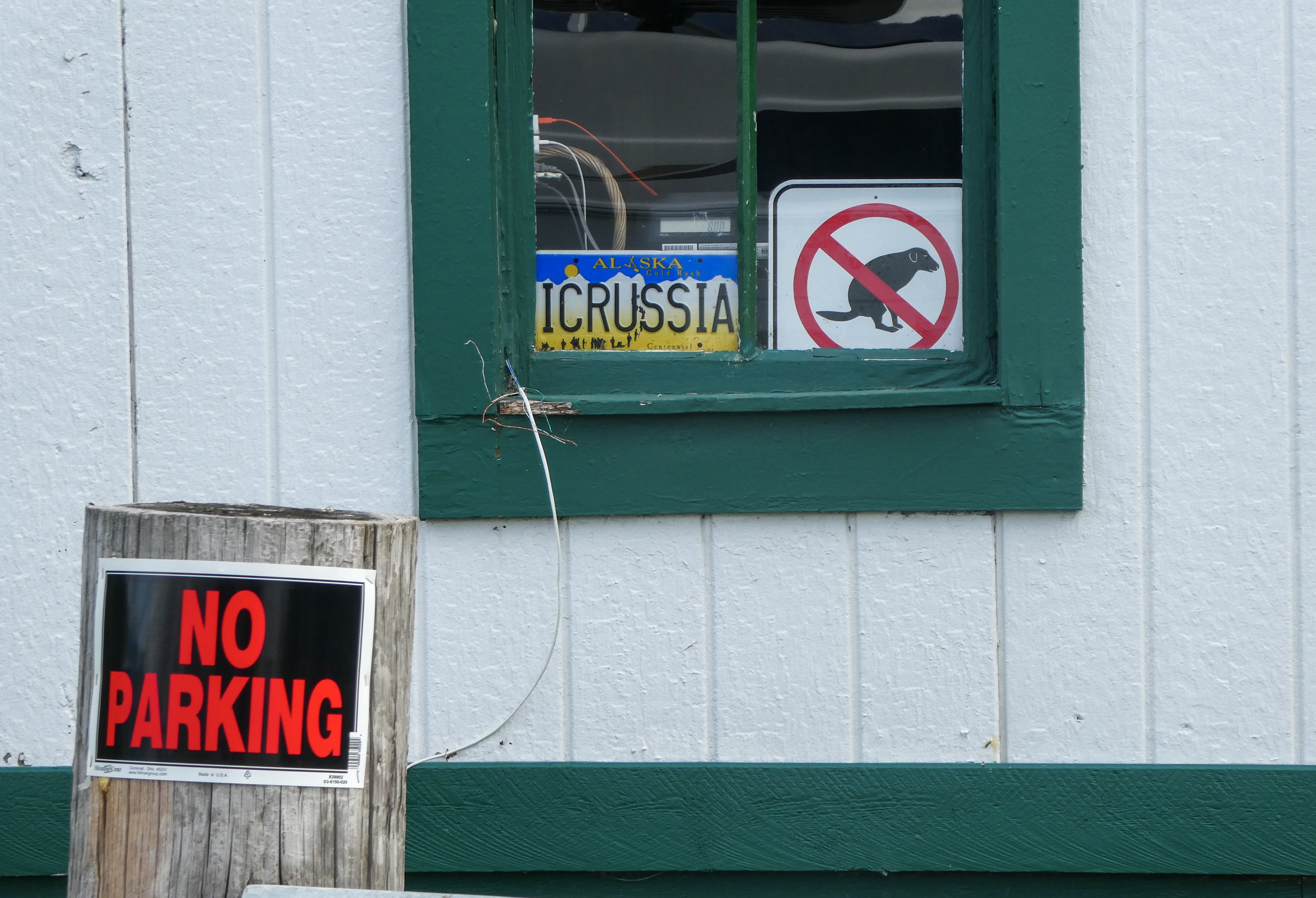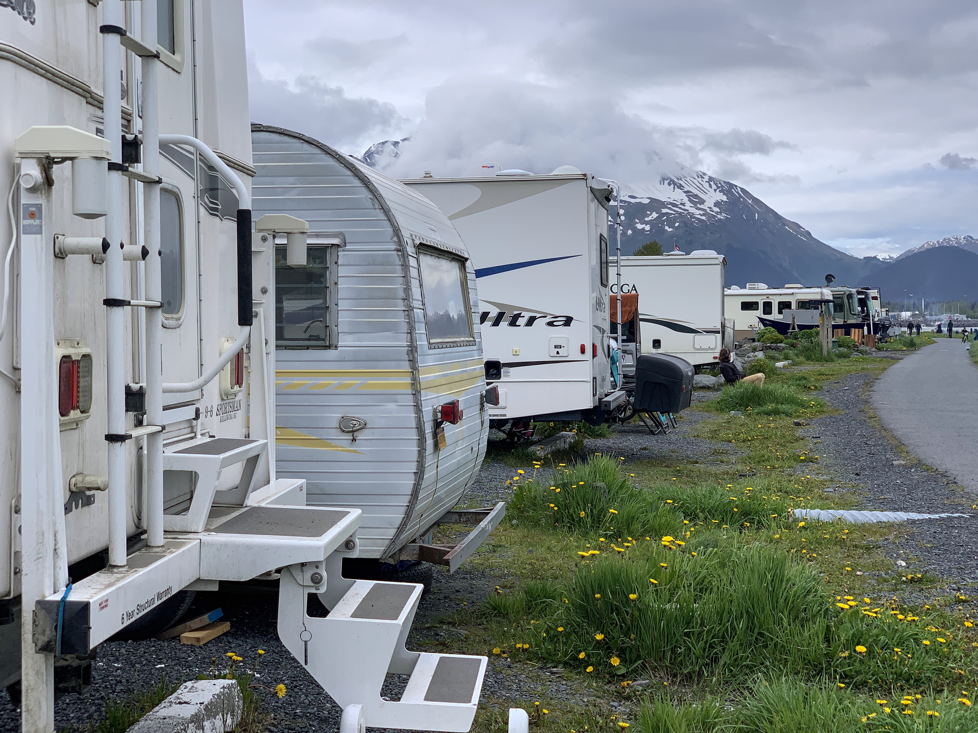 Bears were out roaming all over town. We were told a story that afternoon of a bear climbing into a man’s pickup truck and sitting in the drivers seat eating his lunch scraps. Sally was followed back from the campground toilet by a black bear. Just part of life here, apparently! Read Diana’s sign below.